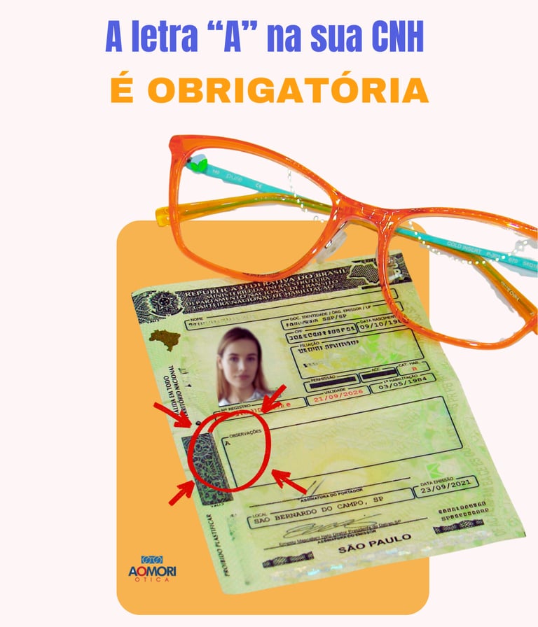 Quando aparece a letra “A”, significa que o condutor é obrigado a dirigir usando lentes corretoras (óculos ou lentes de contato).
